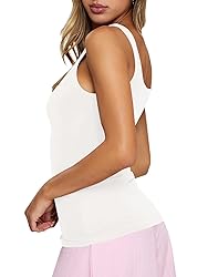 ♥Double-layer design provides full coverage and confidence — thick yet breathable fabric eliminates see-through concerns, even in light colors. Wear it comfortably on its own without extra layers or camisoles. ♥Ultra-soft rayon-spandex blend feels smooth against the skin —buttery soft texture fabric that offers stretch without feeling tight, keeping you comfortable all day long ♥Modern square neckline with wide straps — designed to hide regular bra straps while creating a clean, feminine look that elevates both casual and dressed-up outfits ♥Slim, body-skimming fit that flatters your natural shape — stretches with your movement while gently smoothing your silhouette without feeling restrictive ♥Ideal length for tucking or wearing untucked — longer than typical tanks, making it easy to pair with jeans, skirts, blazers, or cardigans for casual daily wear.