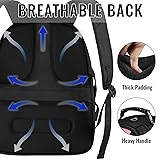 Large Capacity and Organized: The large backpack owns 3 spacious compartments, one separate laptop compartment that fits 15.6 inches laptops, and one main compartment roomy for daily necessities, such as clothes, notebooks, etc. The front compartment has many small pockets, as well as pen pockets and a keychain design to keep your things organized. The large backpack for men has more than 10 pockets, including 2 side mesh pockets for water bottles and umbrellas. Size: 17.5 x 11 x 8.5 inches TSA Approve and Multipurpose: At checkpoints, the large travel backpack can be freely unfolded 90 to 180 degrees, allowing you to quickly pass through airport security and keep things tidy, exclusively designed for airplane travel. A luggage strap allows the traveling backpack to fit on the suitcase, great for international plane travel and day trips Practical and Convenient:A hole in the travel laptop backpack is used for the outside of the earphone, which can be used conveniently. Besides, the large laptop backpack has a sturdy handle with a steel cable on top for easy portability. Side compression straps keep the exclusive pack in any size you need Reliable Material: Made of water resistant and sturdy polyester fabric, and high density nylon lining for better tear resistance, the heavy duty backpack with metal zippers ensures daily long lasting use. Serve you well as a professional office work backpack, and large Backpack. An ideal present for festival Comfortable: With a comfortable padded back design and thick and soft multi panel ventilated pads, the big backpack gives you great back support. Breathable and adjustable shoulder straps relieve shoulder pressure to reduce discomfort in long packs. The backpack for men and women will be a good partner for travel. THIS ITEM IS NOT INTENDED FOR USE BY CHILDREN 12 AND UNDER