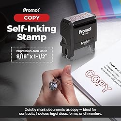 - Making copies of important documents is essential in any business, and the Promot Copy Stamp is the perfect tool to help you accomplish the task with ease. And made with top-quality materials, this copy rubber stamp is durable, providing long-lasting use and precise impressions every time. The self-inking design of this stamp makes it easy to use, and you can produce a clear and legible impression with minimal pressure. This office stamp is versatile and can be used to make copies of contracts, receipts, invoices, and other paperwork. The bold, red ink provides a clear, easy-to-read impression that stands out on any paper. This copy stamper is a time-saving solution to mark documents. Whether you are a small business owner or a legal or accounting professional, this business stamp is a helpful tool to ensure clear communication. Promot Copy Self-Inking Rubber Stamp is a reliable and ideal tool for repetitive stamping. Its high-quality materials, easy-to-use design, versatile function, bold red ink, and efficient marking make it an excellent choice for any office or business. Simplify your copying process, maximize your time, and create lasting impressions!
