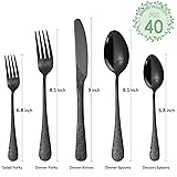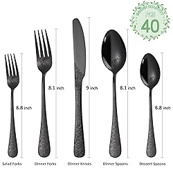 Cutlery set for 8, 40pcs stainless steel silverware set, comes with 8 Dinner Forks, 8 Dinner Spoon, 8 Dinner Knife, 8 TeaForks, 8 Teaspoons. Elegant choice for get together or Family dinners, any formal or informal occasions. flatware set is made of high quality stainless steel, rust resistant and dishwasher safe, durable and healthy for everyday use. Simple appearance, classic design and elegant enough to match all of your existing dinnerware or tableware. Great hand feel, these dining flatware are designed to provide a good grasp, nice with a good length and weight. The stainless steel silverware set with simple appearance without any redundant annoying decoration, The classic design of the stainless steel cutlery set fits any kitchenware, Also good for buffets, gatherings, dinner parties, restaurants, weddings, camping, birthday parties.