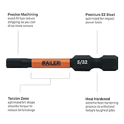 Hex 7/64" Impact Driver Bit x 2"- 5 Pack PREMIUM S2 STEEL – Optimized for impact power tools PRECISE MACHINING – Exact-fit tips reduce stripping so you can drive more screws HEAT HARDEN – Extreme heat hardening process to withstand today’s toughest jobs TORSION ZONE – Optimized bit shape absorbs torque and helps reduce bit breakage