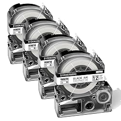 Wide Compatibility: Work Compatible with Epson LabelWorks LW-K200PX-DBL, LW-900P, LW-1000P, LW-C610PX, LW-C410PX, LW-500, LW-300, LW-400, LW-600P, LW-700, LW-PX300, LW-PX400 label makers, as well as King Jim label printers SR230C, R530C, SR3900C, SR230C, SR950, SR330V, SR150V, etc Label without Limits: Label KINGDOM label maker tape is specifically designed to replace Epson LK-4WBN LC-4WBN LC-4WBN9 and King Jim SS12KW label tape models, enabling you to get high-quality black on white prints in a cost-effective way. Label KINGDOM compatible label tape is the perfect choice for users of both Epson LabelWorks and King Jim label printers Superior Design: Label KINGDOM label maker tape utilize black on white ink that is water-proof,temperature-proof, scratch-proof, oil-proof, and chemical-proof. Labels with split-backing design that ensures easy peeling and leaves no sticky remnant when removed Versatile Applications: 4-pack 12mm 1/2" black on white tape replace for Epson label maker tape cassette set is a cost-effective solution to meet all your labeling needs! 12mm black on white tape can be used to label anything, perfect for organizing your office, home, supermarket, laboratory, warehouse, library, and more Dimensions: Each cartridge measures 1/2 inch x 26 feet (12mm x 8m), providing you a total of 104 feet of labeling tape