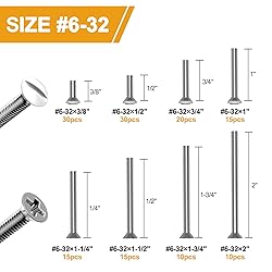 Wall Plate Screws White #6-32x3/8" *30 #6-32x1/2" *30 #6-32x3/4" *20 #6-32x1" *15 Long Outlet Screws #6-32x1-1/4" *15 #6-32x1-1/2" *15 #6-32x1-3/4" *10 #6-32x2" *10 Wall Plate Screws White with a slotted oval head, perfect for when you need to replace decorative screws versatile oval head light switch screws compatible with many devices and wall plates. Long Outlet Screws: Fit for when you need extra length to mount backsplash outlet extender or deep outlet box; These versatile flat head electrical screws are compatible with a number of devices for use on extended outlets, more suitable for fixed sockets, sockets, elbows, switches and dimmers, and apart from that, the long screws fit for embedded electrical boxes, residential or commercial electrical fasteners very well. Reliable material: the device mounting screws are not easy to rust, punched and have good corrosion resistance. Wide applications: Switch Plate Screws Ideal For DIY Home Repair Tool Kit, Electrician Screw For Handyman Tool.