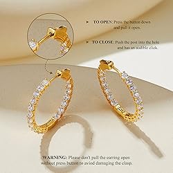 【Hoop Earring】 Our hoop earrings are made of copper with yellow gold plated and cubic zirconia. Lead-free, Nickel-free and Hypoallergenic, it will not irritate your sensitive skin or turn your ears green. The white gold hoop earrings bring a graceful look to any special occasion. 【Specification】 The size of gold hoop earrings is 29mm*3mm (1.14*0.12inches). The weight of the earrings is 6.7g. Enjoy our top quality that have real gold plated, won’t irritated your sensitive skin. It’s simple and understated but gorgeous and classy, you will received a great deal of compliments. 【Design Inspiration】 Gold hoop earrings with cubic zirconia design is easy to take on and off, but not easy to fall off. Simple dainty hoop earrings are both stylish and unique, it can interest to any outfit to add your elegant charm whether formal event or everyday casual. 【Perfect Gift】 Every pair hoop earring will be packaged in a small delicate box. Perfect gift for Valentine's Day, Wedding, Engagement, Anniversary, Birthday, Mother's Day and suitable for any occasion, give any great ladies bring touched surprises. 【Reliable Service】 60 Days Return & Exchange Policy and 100% Satisfaction Service Guarantee. All issues will be solved within 24 hours. We will try our best to ensure you a wonderful shopping experience.