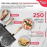 ✪ PERFECT FOR HIGH-DEMAND COMMERCIAL USE: With its ability to make up to 500 bubble waffles daily, this Bubble Waffle Maker is ideal for busy food trucks, cafes, and dessert shops, efficiently handling high demand. ✪ UNIFORM HEATING FOR CRISPY BUBBLE WAFFLES: Equipped with reliable heating elements, this Bubble Waffle Maker ensures even heat distribution, delivering crispy, golden-brown bubble waffles consistently every time. ✪ GREAT CAPACITY: Cook two bubble waffle at a time, with a capacity of up to 500 waffles a day, making it perfect for high-demand environments like food trucks and cafes. ✪ DURABLE STAINLESS STEEL DESIGN: Made from high-quality stainless steel, ensuring longevity and corrosion resistance for years of dependable use. ✪ POWER-EFFICIENT: Designed with a power-saving and energy-efficient construction, making it suitable for long hours of commercial use. ✪ NONSTICK MOLDS: The nonstick coating ensures easy release of waffles and minimizes the risk of them sticking or burning during cooking. ✪ USER-FRIENDLY DESIGN: Manual thermostat and an alarm reminder for easy operation, making it simple for staff to use and maintain consistency. ✪ RUBBER FEET: Four small rubber feet stabilize the machine on the tabletop, preventing it from slipping during use for added safety. ✪ COMPACT SIZE: Perfectly sized for both small and large kitchens, the compact design allows it to fit seamlessly into your workspace without taking up excessive room. ✪ 100% GUARANTEED QUALITY: Backed by excellent customer support, a flexible return policy, and a money-back guarantee.