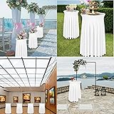90% Polyester / 10% Spandex Skirt Design - These are uniquely designed cocktail table covers that fit any tall round table with a diameter of approximately 32 inches and a height of approximately 43 inches, whether the bottom is an X style or a single center column Stretchy Wrinkle-Resistant Fabric - The table cover is made of silky smooth flexible wrinkle-resistant material, and it makes the table look neat and professional. The soft table skirt falls naturally, elegant, and generous Easy to Install - All you need to do is put the tablecloth on, and you can set the cocktail table tablecloth by making simple adjustments. You can also use a ribbon to tie the table skirt to dress up your party more elegantly Multiple Usages - Exquisite workmanship with elegant looks, this cocktail table tablecloth is suitable for various occasions, such as cocktail parties, weddings, wedding receptions, birthday parties, etc. They can bring a warm and romantic atmosphere very well Care Instructions - You can machine wash or hand wash and dry it, fold it up, and use it as well as the new one. Long time transportation may produce creases, please spray a little water and they will be flat