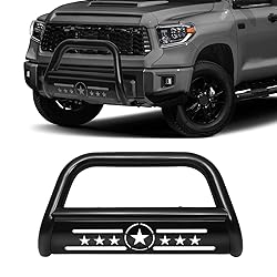 【Applicable Vehicle Model】Compatible with 2007-2021 Toyota Tundra 4.0L V6/ 4.6L 4.7L 5.7L V8, 2008-2022 Toyota Sequoia 4.6L/4.7L/5.7L V8 【Durable Design】 3" enlarged diameter tubing with seamless welding construction for extra reinforcement. Made by advanced CNC bending process. AISHAN bull bar creates a tough, heavy-duty appearance on the front end of your car while also providing protection and visibility. 【Feature & Performance】: AISHAN front bumper is made of high-grade steel for superior strength durable, E-coating textured binish with anti-scratch and customized look. Seamless welding for a sturdy structure. It is built to last long and enhance the appeal of your truck. 【Package Included】 1 x Bull Bar ,1 x Mounting Hardware Set,1 x DIY installation manual. If you receive a product with dents and scratches, or have any missing, or about installation. Please feel free to contact us. 【Easy bolt-on installation】 Bolt-On design with complete mounting kits for ease of installation. Pre-drilled holes designed can let you easily mount auxiliary light or remove skid plate. No drilling anymore. Installation can be done easily in a home garage using common tools.