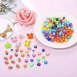 ღ Easter Jewelry Making Kit: Celebrate Spring and the Easter Holiday with our Easter Beads Charms Kit. Including 1950PCS assorted beads in pink, green, yellow, blue and purple colors, contains 960pcs polymer clay beads, 400pcs pony beads, 180pcs solid beads, 30pcs strip beads, 55pcs crystal beads, 20pcs heart beads, 20pcs star beads, 25pcs flower beads, 120pcs gold spacer beads, 100pcs letter beads, 10pcs carrot charms, 32pcs bunny charms, 20pcs colorful egg charms, 4pcs flower charms, etc. ღ Premium Quality Material: Our Easter Bracelet Making Kit made of premium quality polymer clay beads, rhinestone, acrylic and CCB materials. Lightweight, smooth surface, shiny in appearance, sturdy and solid, nickel free, lead free. Cute Easter Charms made of high quality acrylic. Bright Spring colors, help to make the perfect Easter Accessories that will add some fun to your spring wardrobe or would be the perfect present to surprise your favorite peeps ღ Perfect Sizes for DIY Crafts: The Easter polymer clay beads diameter about 6mm, thickness is 1mm, with a 2mm hole in the middle. The pearl acrylic beads diameter about 8-12mm. Beautiful Easter bunny charms size: about 0.6-1.3inch, with a loop on the top. Perfect sizes for most DIY crafts making, so festive and colorful, you'll be the life of the party on Spring holiday celebrations! ღ Widely Applications: Hop into Easter in style with our Easter jewelry making charms ! These super fun, colorful egg flower pendant charms are perfect for celebrating your Easter Holidays!! You can make them into charm bracelets, earrings, necklaces, anklets, key chains, etc..You can also string them into decorative ornaments to hang on the wall or window to add festive atmosphere and leave you unforgettable memories ღ Perfect Easter Holiday Gifts: Spring is around the corner. Try to make unique Easter Accessory jewelry gift with these clay beads and lucky charms for your dearest one on Easter, Spring Holiday Celebration, Costume Party, Anniversary, Birthday, etc. Thoughtful and impressive, enjoy some relaxing DIY time with family or friends