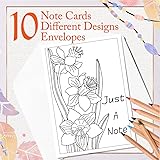 Art Eclect Coloring Note Cards for Adults, Just a Note to Say, 10 Different Designs and 10 White Envelopes (JustNote/10)