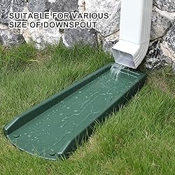 【 UPGRADED VERSION 】: Unlike other on the market, this gutter downspout splash block is an upgraded version, made of thickened PE material. Its biggest advantage is strong and sturdy. It will not deform or crack even in harsh weather (such as snowy). And it can withstand up to 400 pounds 【 WIDELY USED 】: The dimensions of this downspout extender are 24"L x 10.6"W x 2"H. It can be used with any kind of downspout. It adopts a splicing design, allowing you to save storage space. And it can be installed in one step 【 FIXABLE 】: There are two holes on the gutter splash guards, you can use the attached plastics nails to fix it to the ground if necessary, which can prevent it from moving, provide added stability during use 【 UNIQUE DESIGN 】: The pattern on the downspout diverter can increase friction and slow down the water flow speed to reduce the impact of the water flow to a greater extent, which helps you to protect the foundation of your house 【 PACKING LIST & SERVICES 】: 2 x downspout splash block, 5 x PE nails (extra one nail as a backup). We are committed to providing customers with excellent products and services, please let us know if you have any questions or need assistance