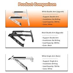 【Important Reminder】 Please ensure your window opening is wider than 16 inches before installation. If any accessories are missing, contact our customer service and we will resolve it promptly. 【Universal Design】 Designed to fit most single or double hung windows, this AC support bracket is compatible with 5,000–24,000 BTU window units and safely supports up to 300lbs. 【No Drilling Required】 Quick, tool-free installation without exterior work. No drilling, hardware, or ladders needed — renter friendly and won’t damage your windows or walls. 【Adjustable & Stable】 Expands from 32” to 42” to fit most window sizes. Fits wall thickness from 3” to 11”. Includes an exclusive bubble level for correct slope positioning. Suitable for brick, cement, or solid wood sills (not for hollow aluminum sills). 【Enhanced Safety Design】 Equipped with non-slip rubber pads to reduce noise and prevent sliding. All necessary accessories are included for convenient setup. 【Premium Durable Material】 Made of heavy-duty epoxy-coated steel to transfer the weight from the window to the bracket, preventing the AC unit from shifting or falling. Built for long-lasting support and rust resistance.