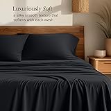 Bare Home 100% Rayon Made from Bamboo Luxury Full Sheet Set - 4 Piece Bedding Set - Deep Pockets - Cooling Sheets - Breathable - Easy Fit - Soft Bedding Sheets & Pillowcases (Full, Black)