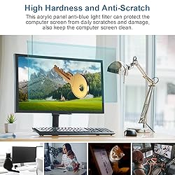 Protect Your Eyes and Your Screen: The easy hanging type acrylic blue light blocking screen protector panel is specially designed for 27 inch diagonal desktop computer LED PC monitors, and blocks up to 95% of UV light and 75% of harmful blue light in the range of 380nm-495nm. This not only reduces eye strain and fatigue, but also protects your screen from scratches, dust, and normal signs of wear. It is clear anti-blue light, so not anti-glare. Easy Installation and Reusability: The blue light filter panel can be installed in seconds without any tools. Simply clean your monitor and peel off the films on both sides of the computer screen blue light blocker. The panel is also reusable, so it's perfect for those who like to move their monitor around or want to reuse the screen protector in the future. Not for touchscreen, but you can remove it at any time for touchscreen. Perfect for PC Workers, Programmers, and Gamers: The easy hanging type acrylic anti blue light computer screen filter panel is the perfect solution for those who work with computers for extended periods of time, such as PC workers, programmers, and gamers. By reducing eye strain and fatigue, it promotes better eye health, allowing you to work or play for longer periods of time without experiencing discomfort. Hardness and Scratch Resistant: The 27 inch screen protector panel is highly scratch-resistant with 9H hardness, providing superior protection against daily scratches, dust, and normal signs of wear. This keeps your screen clean and intact, ensuring a longer lifespan for your monitor. High Definition Translucent Screen: The blue light monitor screen protector has a light transmission rate of up to 98%, which restores the true color of the screen while not reducing screen brightness. There is no chromatic aberration, double vision, or grid, and no dizziness. It's perfect for those who demand high definition and transparency from their computer screen.