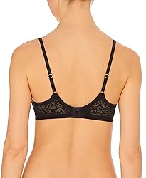 Signature Natori comfort paired with an iconic lace for a luxurious feel. Two-tone scroll lace exclusive to Natori has a seamless finish that remains invisible under clothing. Stretch foam pads for a clean tailored look and includes adjustable straps featuring signature Natori gold hardware. Soft elastic outlines the backs and center gore with a comfortable hold. Stretch lace backs are lined with mesh starting with size 34D for additional support.