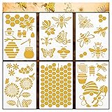 Bee Theme Stencils 6PCS - Reusable Honeycomb & Sunflower Painting Templates for DIY Wall Art, Furniture Painting, Floor Decor | PET Craft Stencils for Home Projects (11.7x8 Inch)