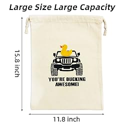 - This high-quality drawstring duck gift bag is beautifully printed with YOU'RE DUCKING AWESOME, stylish SUV and cute duck pattern, making the drawstring gift bag both eye-catching and cute, it is easy to attract people's attention, and is the ideal gift bag. Duck drawstring bag measures 15.8X11.8 inches, large capacity for easy storage and can hold more rubber ducky and essentials.
