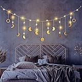 - Moon Phase Wall Decor with LED String Light, 13 Gold Wood Boho Wall Hanging Decor Mood Garland 56'' - Celestial Phases Moon Decor in Bohemian Style for Bedroom Home Living Room Christmas Gifts