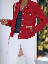- luvamia Women's Basic Button Down Stretch Fitted Long Sleeves Denim Jean Jacket The womens winter jackets features collared neckline design, button down closure, two flap chest pockets just for show and side pockets, single-breasted, long sleeve fashion jacket, western jackets. Bomber jacket women fashion is made from the cotton, polyester and spandex, stretchy and soft. Demin jackets for women fashion can easily cope with transeasonal wear. Side pockets details and the regular hem of the cute women's jackets are tailored of western vibes. luvamia womens western jacket can give you a vintage and stylish look. luvamia cute jackets for women fashion are perfect for women, casual daily outerwear, work casual, street, holiday, club and concert in spring, summer, fall and winter. Fall outfits for women are standard US sizes. Size Small fits size 4 - size 6, size Medium fits size 8 - size 10, size Large fits size 12 - size 14, size X-Large fits size 16 - size 18, size XX-Large fits size 20 - size 22. Size Small fits size 4 - size 6; size Medium fits size 8 - size 10; size Large fits size 12 - size 14; size X-Large fits size 16 - size 18; size XX-Large fits size 20 - size 22.