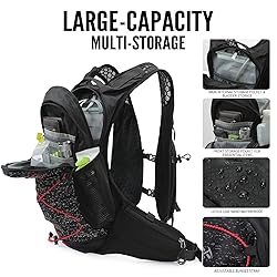 🚴【Highly Durable & Lightweight】This awesome IX INOXTO running hydration vest backpack made of scratch-resistant and wear-resistant material with a lotus leaf-like waterproof effect. 16.92”x8.66”x7.87” in size, Ergonomically fits, The weight of 0.97 lbs and capacity of 12L are the perfect match for short trips, satisfy your thirst for adventure. 🚴【Premium Quality Water Bladder】The Hydration Pack Backpack comes with a 2 liter hydration water bladder. A switch valve and a cover cap make double leak-proof. Large opening allows quick filling of water and ice and it is easy to clean, the water line (40"length,0.4"diameter) provides a wholesome flow for easy drinking keeps your water tasting fresh, all day. The water temperature is range -20~+50℃. 🚴【Security and Multiple Storage Pocket】Water backpack for hiking Reflective trim for night safety, has multiple pockets can store various necessities outdoor. The bottom front pocket allows you to quickly find what you need during hiking. Smaller quick access items without removing the pack, such as keys, wallet, gadget, sunscreen, phone, towel, or any other items. To travel light, efficient access, let you run faster and farther. 🚴【Comfortable Back System】Lightweight cycling backpack Back lining and shoulder straps are all made of lightweight, breathable mesh fabric speeds up air-flow which can keep your back dry and comfortable while hiking. Soft shoulder strap edges prevent the pack from chafing your skin. Adjustable chest straps and waist straps can reduce the burden of shoulders make a backpack perfect fit reducing bounce and keep the balanced. 🚴【Extensive Applications】This hydration pack is Perfect sports gear you hydrated while running, marathon, cycling, hiking, skiing, climbing, race and training or any adventure outdoors. And it has a helmet organizer pocket Carry trekking poles on both sides for your need. A decent Holiday Gift for families and friends who love outdoor sports. especially yourself! IX INOXTO hydration backpack is always be there for you.