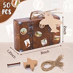 VGOODALL 50PCS Mini Suitcase Favor Boxes, Travel Theme Candy Box Vintage Kraft Cardboard with Tags and Burlap Twine for Wedding Travel Theme Party Bridal Shower Decoration