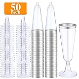 Thenshop 50 Pcs Plastic Champagne Flutes Disposable Champagne Glasses Bulk 5.5 oz Clear Mimosa Cocktail Cups with Rim Detachable Glasses for Wedding Party Birthday Anniversary(Silver, Clear)
