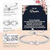 Daughter Gifts: Dear daughter, I hope you will grow up happily and have a smooth life in the future. Send your daughter the love bracelet to express your eternal love Adjustable Bracelet: The infinity bracelet can be adjusted to fit most wrists. Suitable mothers day bracelet gifts for daughter Gifts for Daughter: The silver bracelet comes with a delicate box and greeting card. Women bracelets are ideal gifts for daughters from mothers and appropriate mothers day birthday gifts for daughters. Suitable gifts on Mother's Day, Birthday, Thanksgiving, Christmas and so on Cute Bracelets Material: The heart bracelet is made of stainless steel, which is not easy to fade and rust. Ideal daughter gift from mom or dad After-Sale Service: If you have any question, please let us know and we will answer them for you