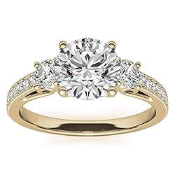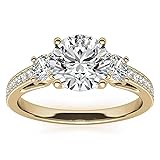 Luyona Three Stone Moissanite Wedding Anniversary Engagement Ring for Women 1-1/2 Carat (ctw) Round Cut Wedding Anniversary Promise Rings