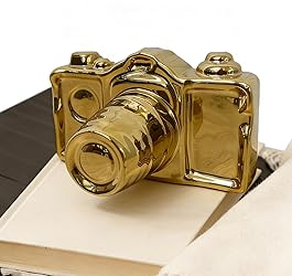 Material-Camera statue is made by ceramics and coated with a golden plated, they are shining and gorgeous,easy to clean, no odor, non-toxic and non-hazardous.The Giraffe ‘s bottom also with soft cushion to keep placed steadily Measure-Decorative object is 6.3 x 4.6 x 3.54 inches.The size is perfect to display any place as you want. It can be table centerpieces for living room or office, table decor, TV stand decor etc. Modern and Creative Design-Polygon composition, electroplated gold effect,clear line outline and 100% hand-crafted by professional artists. The Camera Decor is an excellent gift for your family, lover or any special people you can think of.Its also Special gift for Christmas , Thanksgiving, Memorial Day, Father's Day, Mother's Day, and other special occasions. Package-Safety package with bubble bag +Box.(if there is broken, please contact us in time