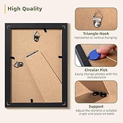 Super Value Picture Frame Set: The 4x6 frame set of 5, can be decorated to create a unique photo collage frame for wall, or placed in the bedroom, living room, staircase, balcony or office with other sizes picture frames to showcase your precious moments and memories Multiple Display Methods: HappyHapi picture frames 4x6 display 3.5x5 photos with mat or 4x6 photos without. The black picture frames can be displayed on a desktop by using stand or wall-mounted by using hook. You can display horizontally or vertically as your need. Please open the stand to a 45-degree Angle to place it stably on the desktop Simple & Classic Design: The 4x6 picture frame collage adopt classic black , which can be matched with any occasion and is suitable for various photos, paintings, landscapes, certificates or collectibles. The small picture frames are nice decorative items to decorate your home, office, restaurant and bar. 4x6 picture frame bulk can carry different memories and serve as thoughtful gifts with special significance for Christmas, Halloween, Thanksgiving, Mother's Day or birthdays Selected Robust Materials: The 4 by 6 picture frame is made of MDF wood frame strips, which are sturdy and not easy to break. 4x6 frame is paired with high-definition organic glass, which can clearly display your photos while preventing dust and damp air from damaging them. Before using the photo frame 4x6, please remove the protective film attached to both sides of the organic glass Safety Packaging: The corners of the 4x6 photo frame are protected by additional paper corners to prevent wear and tear. The entire set will be placed in bubble wrap, and the outer packaging will also be in thickened cartons. There is no need to worry about receiving damaged products