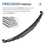 - About AEAGLE Leaf Springs:--Sturdy Steel: We choose high-quality 60Si2Mn (A Steel with Higher Hardness) to make our products strong and durable. --Good Corrosion Resistance: Our Trailer leaf spring kit with anti-rust coating.--Well-selected and Tested: To ensure that Leaf springs can withstand the load impact of the wheel on the frame, reduce the severe vibration of the body, and maintain the stability of the vehicle and its adaptability to different road conditions.--Stable Elastic Characteristics: It can improve the smoothness and stability of Trailer driving, thus improving comfort.--Ideal Solution: Seamlessly replaces leaf springs damaged by overloading, collision, cracking, or corrosion, or are due for replacement when the vehicle sags, bounces excessively or rides unevenly.Product Parameters: --3000lbs capacity per spring for 6000lbs trailers--Eye to eye length: 25-1/4"--Free open: 3"--Width of leaf: 1-3/4"--5 leaves--9/16" bushing diaKit Includes: --4 x Double Eyes Springs--Tandem trailer axle hanger kit for 1-3/4" leaf springs (2 x EQ-E1 equalizers, 6 x 3" tall hangers, 8 x shackle straps, 14 x 9/16"-18 x 3" long shackle bolts and locknuts)Replaces for Part Number: --Replaces SW5