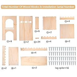 【 Premium Materials 】 Rabbit Wooden Castle is made of natural premium basswood plywood with a healthy smell, durable material and overall natural appearance. The board is about 0.3 inches thick, so even if the rabbit jumps on the roof, the board will not break easily, which adds a lot of fun for them. 【Supersize】When installed, the castle measures 32.7 x 24.5 x 25 inches, with a curved door 8.1 inches high. Enough for rabbits, guinea pigs, chinchillas, ferrets, cats, hamsters and various small animals to play, hide, rest and sleep in. 【Special Design】Double floor design with Windows, arched doors, Bridges and slides. Rabbits are free to roam the castle, snack on the top of the tower, play on the Bridges and slides, and nap inside. This is so much fun! All rabbits can easily jump to the top of the tower by themselves (no ramp required, including baby rabbits). 【 Easy to Assemble 】The castle can be disassembled for easy storage. Of course, we also come with an installation manual, and you don't need any tools to install the log cabin. We also distributed enough rubber rings to hold each joint in place to create a sturdy and durable house. 【 Creative 】 Feel free to be creative. You can paint your own rabbit castle using pet paint.
