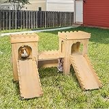 Extra Large Wooden Rabbit Castle Hideaway Tunnel and Bed Small Animal Hideaway Hut Solid Safe Construction Play Hideaway Hut for Rabbit Guinea Pig Chinchilla