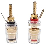 Package Included: 4 x Speaker Terminal Binding Posts (2 Black 2 Red) Suitable for 4mm banana plugs Gold-plated terminals, brass conductor, transparent crystal housing Oxidation resistance, low distortion, beautiful appearance, suitable for amplifier or speaker DIY