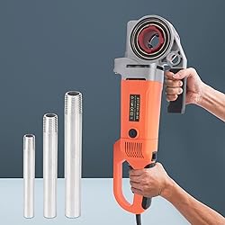 PARAMETER:Threading Range: 20.9-49.6mm/0.5-2in, Power Type: Alternating Current, Rated Power: 2300 (W),Voltage: 110 V, 60 Hz ,Rated Spindle Speed: 25 (r/min), Dies Diameter: 15,20,25,32,40,50mm (1/2", 3/4", 1", 1-1/4", 1-1/2", 2") POWERFUL DRIVING FORCE: Our handheld pipe threader kit adopts standard pipe cutting threads designed for threading 0.5-2" pipe, for more precise cutting. 110V 2300W pure copper motor produces 25 RPM fast speed. The motor of this electric pipe threader adopts all-copper core coils, which is the most ideal material for an electric pipe threader, to ensure efficient and stable running CHANGEABLE DIES 1/2"-2" & WIDE APPLICATIONS: This pipe threader kit’s equipped with six different sizes of dies 15,20,25,32,40,50mm (1/2", 3/4", 1", 1-1/4", 1-1/2", 2") that can be quickly replaced. It can meet the cutting needs of different sizes and materials. Such as threading galvanized pipes, iron pipes, PP pipes, and tubes. Suitable for industrial and mining enterprises, institutions, and family maintenance CONVENIENT OPERATION: Our pipe threader machine has a rod can help you fix the pipe. A forward and reverse switch, a locking power switch, and a start switch are trustable. Ergonomic anti-slip handle with concave and convex soft rubber, thus achieving a good non-slip effect and more convenient for your use PACKAGE INCLUDES:This portable pipe threading machine kit includes 1 x Pipe Threader,1 x Pipe Clamp,1 x Fixed Rod,2 x Carbon Brush,1 x Oil Can,6 x Dies. And one portable Storage Box, so you can store and keep all parts organized after usage. Lightweight and compact hand design is labor-saving, convenient carrying, and durable. This electric hand threader makes traveling from one job to another a breeze!