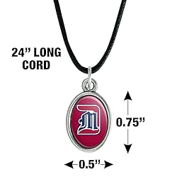 FUN & FASHIONABLE: A fun and festive statement piece, our corded pendant features an eye-catching oval charm. Whether you wear it as an everyday accent piece, or a unique, conversation-starting accessory, this versatile charm necklace, will add fashionable flair to any look. DESIGNED TO LAST: Crafted from corded black satin, our necklace boasts an adjustable lobster clasp closure, and includes a resin-coated oval charm with the featured design displayed on both sides. The cord is approximately 24" and the charm oval is 0.75" (19mm) in length. PERFECT FOR TEENS, AND ADULTS: This memorable pendant is perfect as a party favor, goodie bag filler, stocking stuffer, class reunion, or for anytime feel-good fun. Ideal for adding a splash of personality to your jewelry collection. OFFICIALLY LICENSED: Detroit Mercy, University of products sold by Graphics and More high quality and officially licensed. Proudly printed in the USA.