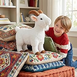 - HIGH QUALITY SIMULATION GOAT PLUSH TOY!-Very Realistic Animal Toys!-100% Handmade Cute Goat Plushy!SIMULATION'S PLUSH TOY:Imitating real animals, its milky white fur is smooth and soft, four dark standing gray hooves are bright, the overall shape design is realistic, and the face design is unique, very realistic. It can also be given as a good collection and gift.Our goat plush is very soft, realistic, cute and durable!Quality Handmade crafts!Made of high-quality fabrics and plenty of fillers, reinforced stitching meticulous. The quilt cover of the toy is made of high-quality plush fabric. The inner thick PP cotton is filled. Stuffed plush goat can be hugged and hand-washed.GREAT GIFT IDEA:Expand your child's interest in pet and animal research and animal care. Our animal plush provides lovely companionship for any child! It is the best gift choice for pet lovers! Wearing a super soft velvety coat, you will not be able to stop hugging it!Perfect Gift:These are thoughtful gifts for children, parents and family members of all ages. Best choice for birthdays, Valentine's Day gifts, Christmas, Thanksgiving or any other anniversary.Our plush collection can be combined with animals of all sorts to create the ultimate collection!Start now, scroll to the top, add a shopping cart,Add new hug friends for your children and family!*Package Includes:1 x White Goat Plush Toy