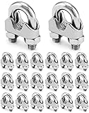 QWORK 1/2" Wire Rope Clamp Clip M12, 20 Pack Large U Bolt Saddle Guy Fastener, 304 Stainless Steel Fastener Cable Clamps, Connect 2 Layers of Wire to Form a Loop