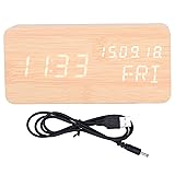 Walfront LED Digital Alarm Clock Wooden LED Alarm Clock Digital Alarm Clock Sound Control 3 Brightness Adjustment for Living Room Office