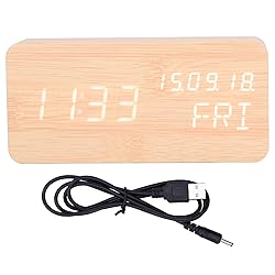 [ Material] Digital alarm clock is made of wood and ABS material, with texture, , and can be used for a long time. [LED Light] With LED light digital display, when the switch is turned on, the soft LED light will be displayed on the smoothed wooden surfaces. [Clearly At Night] The bedside clock is exquisite in workmanship and can clearly see the time even at night, so you can use it with confidence. [Voice Control Function] LED alarm clock has a voice control function, which can display the time, date, day of the week at the same time. [Multifunctional] This alarm clock is 12/24 hour system, with three levels of brightness adjustment, three sets of alarm functions, and an alarm on weekdays.