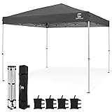 CAPHAUS 12ft x 12ft Patented One-Push Pop Up Outdoor Canopy Tent, Heavy-Duty Commercial Grade w/Central Lock, Portable and Instant Folding Shelter with Wheeled Carry Bag and Weight Bag, Dark Grey