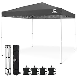 - CAPHAUS Patented One-Push Pop Up Outdoor Canopy Tent, Heavy-Duty Commercial Grade w/ Central Lock, Portable and Instant Folding Shelter with Wheeled Carry Bag and Weight Bag, 12ft x 12ft, Dark Grey