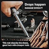 2x Thicker Than Others: Keep your surface safe and unharmed no matter how tough the job. Say goodbye to nicked tables with this 1/4 inch-thick mat 48x17 Inch Mat: It's spacious enough to accommodate any firearm, so you can work with ease and peace of mind, knowing that you have the perfect foundation for your cleaning routine Hassle-free Cleaning: The anti-leak, oil and solvent-resistant surface is like a shield that protects your bench and lets you wipe away spills in seconds. Finish your cleaning routine faster, so you can focus on the fun stuff Anti-slip Rubber Backing: Stays put on any surface; use it as a gun cleaning mat, as a workbench protective mat for any project, or even as an extra large mouse pad Convenient Storage Case Included: Rolls up nicely in the storage tube with tactical efficiency; stays flat once you unroll it, instantly ready to protect your surface; perfect gift for gun lovers Reliable Products and Service for Your Peace of Mind: Falko Tactical offers a lifetime warranty in case of manufacturing defects