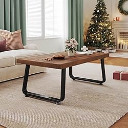 Modern Coffee Table with Rustic Charm: This solid wooden coffee table seamlessly blends a modern aesthetic with rustic charm, featuring a 2.36-inch thick natural wood tabletop and a sturdy metal frame. Versatile Center Table for Living Room: This farmhouse-inspired coffee table serves as a versatile center table for your living room, adding a touch of style and functionality to your space.and the rustic design of this tea table exudes a warm and inviting atmosphere, perfect for creating a cozy gathering spot in your living room. Sturdy and Stylish Wood Coffee Table: Crafted with durable engineered wood, this wood center table boasts a sturdy composition that can withstand the demands of everyday use, making it a reliable centerpiece for your living area. Functional and Elegant: This natural rectangle cocktail table not only provides a stylish focal point but also offers ample surface area for placing drinks, snacks, and decor items, making it a practical and elegant addition to your home. 100% Satisfaction Service: The modern industrial cocktail table comes with a 12-Month warranty and friendly customer service ready to serve you within 24h!
