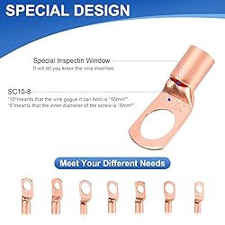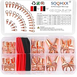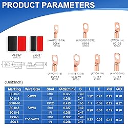 【Contents of Terminal Plastic Box】This set of battery cable terminals, ring terminal connectors, copper wire lugs, and heat shrink tubing kit contains SC16-8 SC16-6 SC10-10 SC10-8 SC10-6 SC6-8 SC6-6 Ring Terminal Battery Lugs and 3:1 Heat Shrink Tubing Kit. 【Superior Materials and Quality】All components are made of heavy-duty construction materials, battery cable terminals and ring terminal connectors are precision engineered for a strong connection, copper lugs provide good electrical conductivity, and heat shrink tubing is durable and insulated to prevent loose battery terminals and poor contact 【Reliable and Easy to Use】All cable lugs/terminals conform to US standard universal dimensions for easier access to cables, while each lug/ring terminal is marked with specifications. These heat shrink tubing sleeves are electrically insulating, airtight, and heat resistant. Heat shrink tubing temperatures of up to 600 volts, 257 degrees Fahrenheit allow the battery cable ends to tightly wrap around the wiring, enhancing the stability of the connection. 【Widely Used】These battery cable lugs are ideal for distribution boxes, marine, golf carts, solar panels, vehicles, motorcycles, power inverters, RV, DIY wires home applications and other outdoor applications for electrical wiring, ground wires 【Service Upgrade】Customer satisfaction is always our top priority, if you have any questions about Battery Cable Ends and Heat Shrink Sleeves, please contact us immediately, our customer service team will provide you with satisfactory solutions.