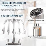 HOMELODY 2 Handles Kitchen Faucet with Pull Down Sprayer for 3 Hole Sink, 8 inch 360° Rotating Spout Centerset Kitchen Sink Faucet with Water Lines Brushed Nickel