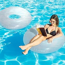 Ingenious Ring Shaped Design: ring pool float is featured with a beautiful ring shaped design, in line with most people's aesthetic, easy to attract attention from other people, adding more fun to your party Serviceable Material to Use: made of quality PVC plastic, this ring pool inflatable is reliable, not easy to break or deform; The thick material can remain inflated for a long time, bringing you a pleasant using feeling Appropriate Size to Use: ring shaped pool float comes with a proper size, measuring about 43 inches in diameter, can be carried around, without bringing some burden for you, suitable for indoor and outdoor use Wide Range of Usage: pool float is suitable for various occasions, ideal for themed parties, such as summer parties, beach themed birthday parties, swimming pools, outdoor parties, and it can be applied as a photo prop to take many sweet photos What You Will Receive: package includes 2 pieces of pool floats in clear color, the quantity is sufficient to meet your needs for decorating your parties, and you can also share them with your friend