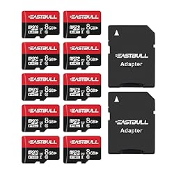 EASTBULL 8GB 10-Pack of Micro SD Cards, SD Memory Card 8GB SD Cards Pack Full HD Video 90MB/s UHS-I U1 Micro SDHC Class 10 for Surveillance Security Cam (10 Units and 2 Adapters)