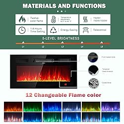 TV Stand with 36" Fireplace: 70"L stand integrates twelve colors electric fireplace with five dimmer levels & thirty-six colors LED color combos for a customizable viewing & heating experience Sturdy Stainless Steel Supports: Eight heat-resistant columns ensure long-lasting durability & stability, perfect for TV support & storage Classic Black Wood Grain Design: Elegant wood grain top & mirrored cupboard door blend seamlessly into any living space, easy to maintain Safe & Energy-Efficient Fireplace: Adjustable temp range (62-82°F) with overheat protection & auto shut-off timer, CSA&ETL certified Ample Storage & Cable Management: Double-layer cabinets offer space for entertainment gear, while cable holes keep wires organized for a cleaner look The frame is made of FSC-certified wood