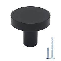 [Solid Material]: The cabinet knobs are made of high quality aluminum alloy.They plated by matte black finish, which accompanied with good looking and fine touch.They are waterproof and anti rust with a long service life [Satisfaction Services]: HANIHUA is committed to providing our customers with high-quality cabinet knobs. If you have any questions, please tell us by email, and we will promptly provide you with a satisfactory solution [Measurements]: Diameter: 1.16 inch (29.5mm), Height: 0.98 inch(24.9mm). Easy to install, even people with no experience can easily install [Package Included]: Each package includes 10 cabinet knobs, 10 standard 1 inch screws, and 10 breakaway 1.8 inch screws. Each knob is individually wrapped and packaged to protect the beautiful color from scratches [Widely Applications]: Each of our matte black knob is carefully polished to achieve a perfect appearance. They can be perfectly applied to kitchen cabinets, bathrooms, drawers, cupboards, wardrobes, and more. As a gorgeous decoration, they will add a fresh touch