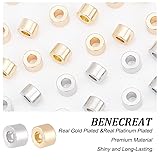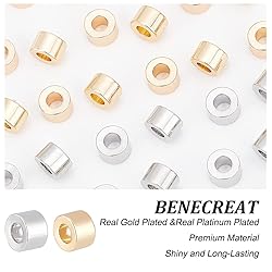 - BENECREAT 40Pcs 2 Colors Brass Beads, Column, Real Gold Plated & Real Platinum Plated Size: about 6mm in diameter, 4mm thick Hole: 2.5mm Quantity: 20pcs/colors, 2 colors, 40pcs;